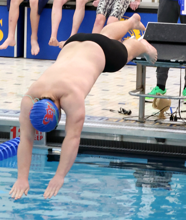 Foreign exchange student Henry Schultz Larsson set PRs in the 100 breast (1:28.09) and 50 free (:34.67), placing 19th and 29th, respectively.