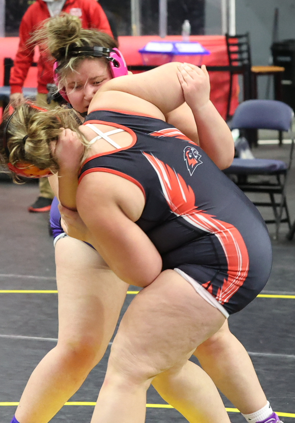 The Eagles’ Elizabeth Kunte placed fifth at 100. Afteropening with a loss by fall, she pinned Owego’s Lucy Purtell in 4:17 and Walton/Delaware Academy's Scarlet Beardslee in 2:50. Kunte suffered a 10-0 tech. fall against Binghamton/Seton Catholic’s Layla Orinik, then closed out the day with a 12-1 tech. fall over Corning’s Onalee Short.