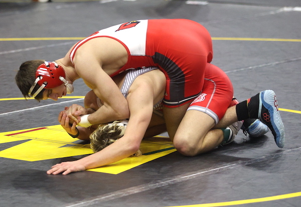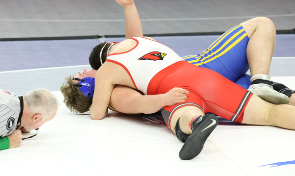 The Cardinals put two wrestlers on the sixth-place podium spot — Wyatt Dillow (215) and Jack Blomberg (285).