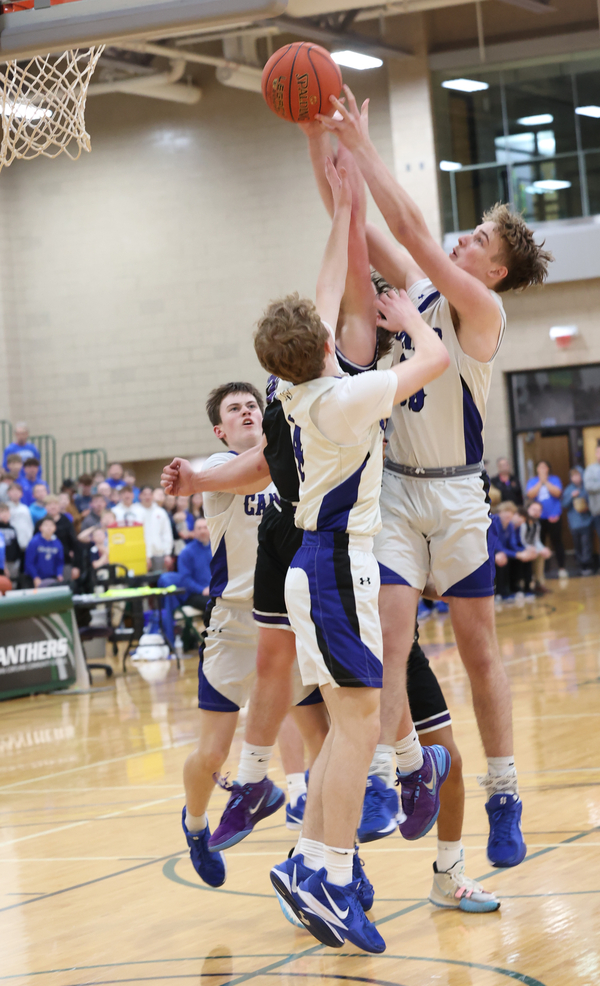 Back-to-back baskets by Jakobe Foster cut the lead to 32-17, the Wolves stretched it to 35-17, but Ben Sheridan’s 3-pointer made it 35-20 at the break.