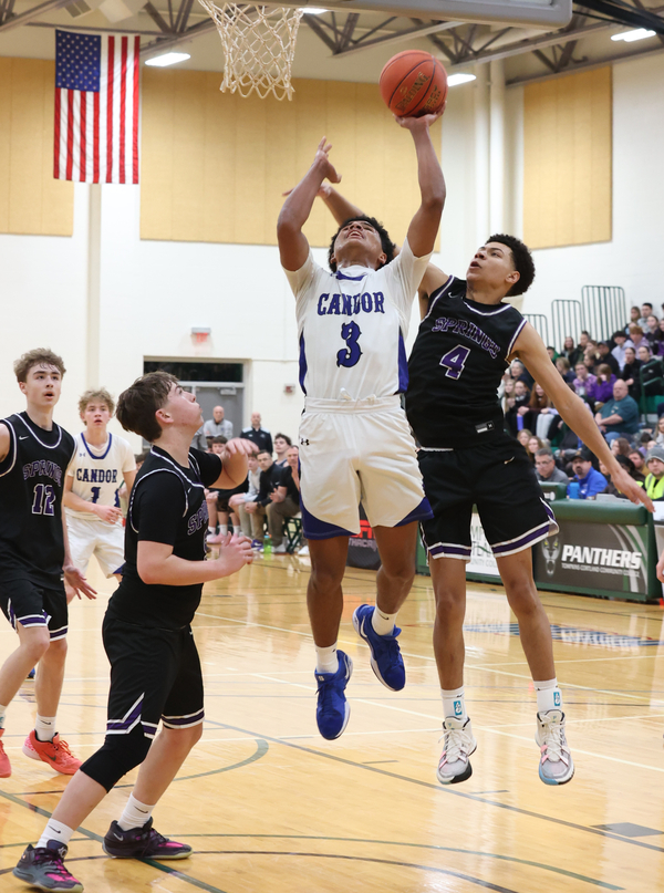 Foster and DeChick traded buckets, then Makie got hot from beyond the arc, knocking down four treys to bring Candor within 50-42 before Testa drove the lane for a 52-42 lead heading into the fourth quarter.