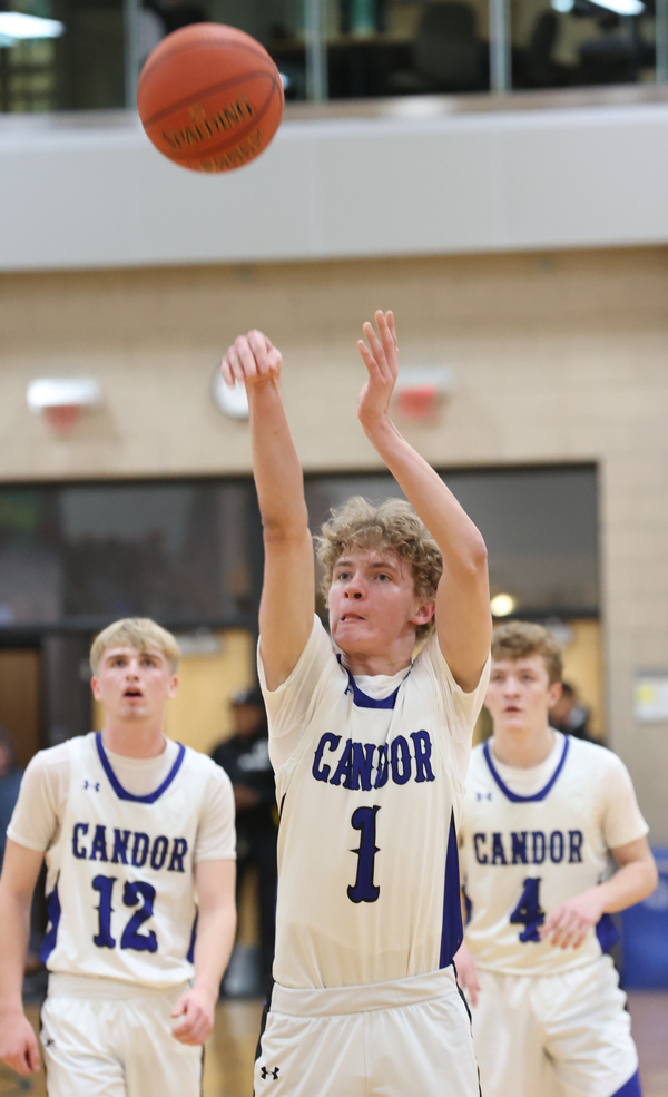Foster led Candor with 23 points, going 7-for-10 at the foul line, and also had four assists, four rebounds and three steals while Makie added 21 points with the help of his four threes, and also had four rebounds and two assists; and Sheridan chipped in with seven points, four rebounds and one steal.