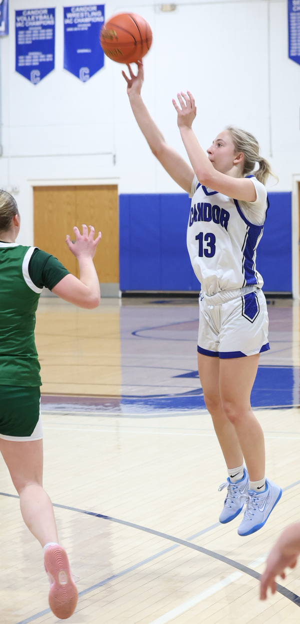Not to be outdone, Megan Williamson scored a basket, then followed up with a steal and layup, and Ray added a free throw to give Candor an 11-9 edge heading into the second quarter.