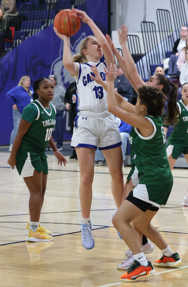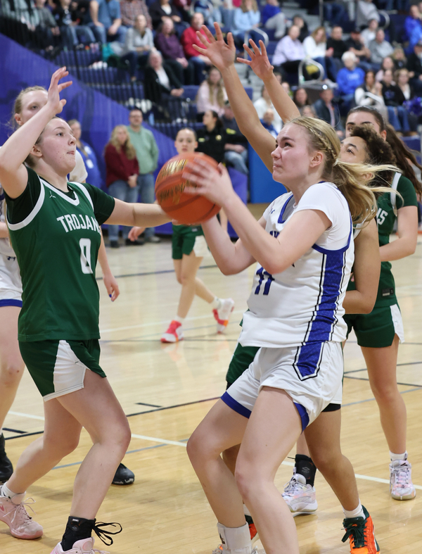 Taylor and Malley Heidl exchanged 3-pointers in the first two minutes of the third quarter while Makie hit for six points in the period. Four of them highlighted a 5-0 surge which was countered by a six-point Newfield burst, giving the Trojans a 33-31 lead heading into the final frame.