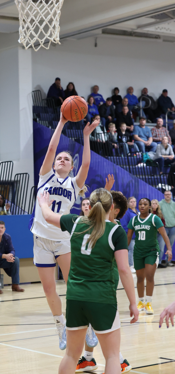 The Trojans scored the game’s first basket, but Ray wrapped a free throw and bucket around a Makie 3-pointer to give Candor a 6-2 lead.
