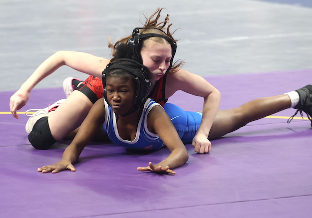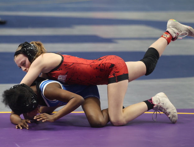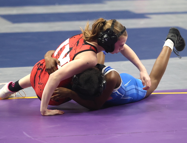 In her first consolation bracket match, Beach pinned Northern Adirondack's Lily Blazina in 54 seconds, then scored an 11-1 technical fall over Chenango Forks' third-seeded Emily Phelps in 2:35.