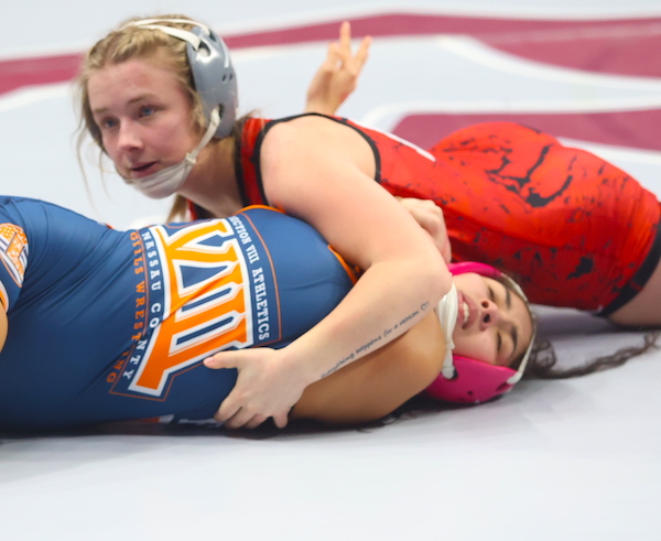 In her first wrestleback match, Merrill trailed 14-5 when as pinned by Middletown's Shane Dharaleen in 2:26.
