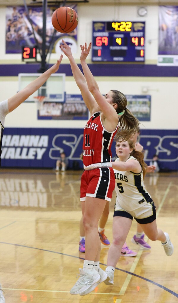 Ella Kariam led all scorers with 18 points. Clarke and Hughes added 13 points apiece with four and three 3-pointers, respectively, as the Sabers drained 12 treys on the night.