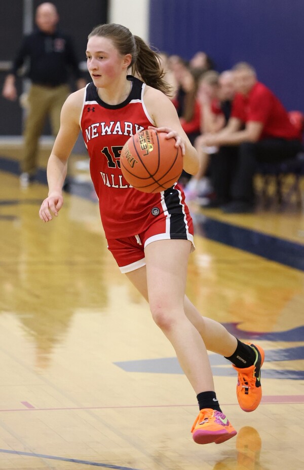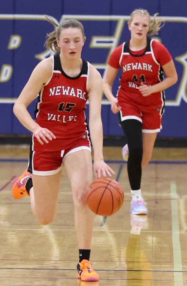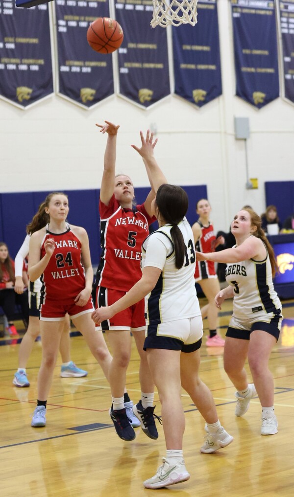 Trailing, 3-2, the Cardinals went ahead on Haven Aylesworth’s reverse layup, followed by a steal and layup from Aubrey Kwiatkowski to make it 6-3. Unfortunately for Newark Valley, the Sabers got hot and went on a 16-point run to build a 19-6 cushion with 1:13 remaining in the first quarter.